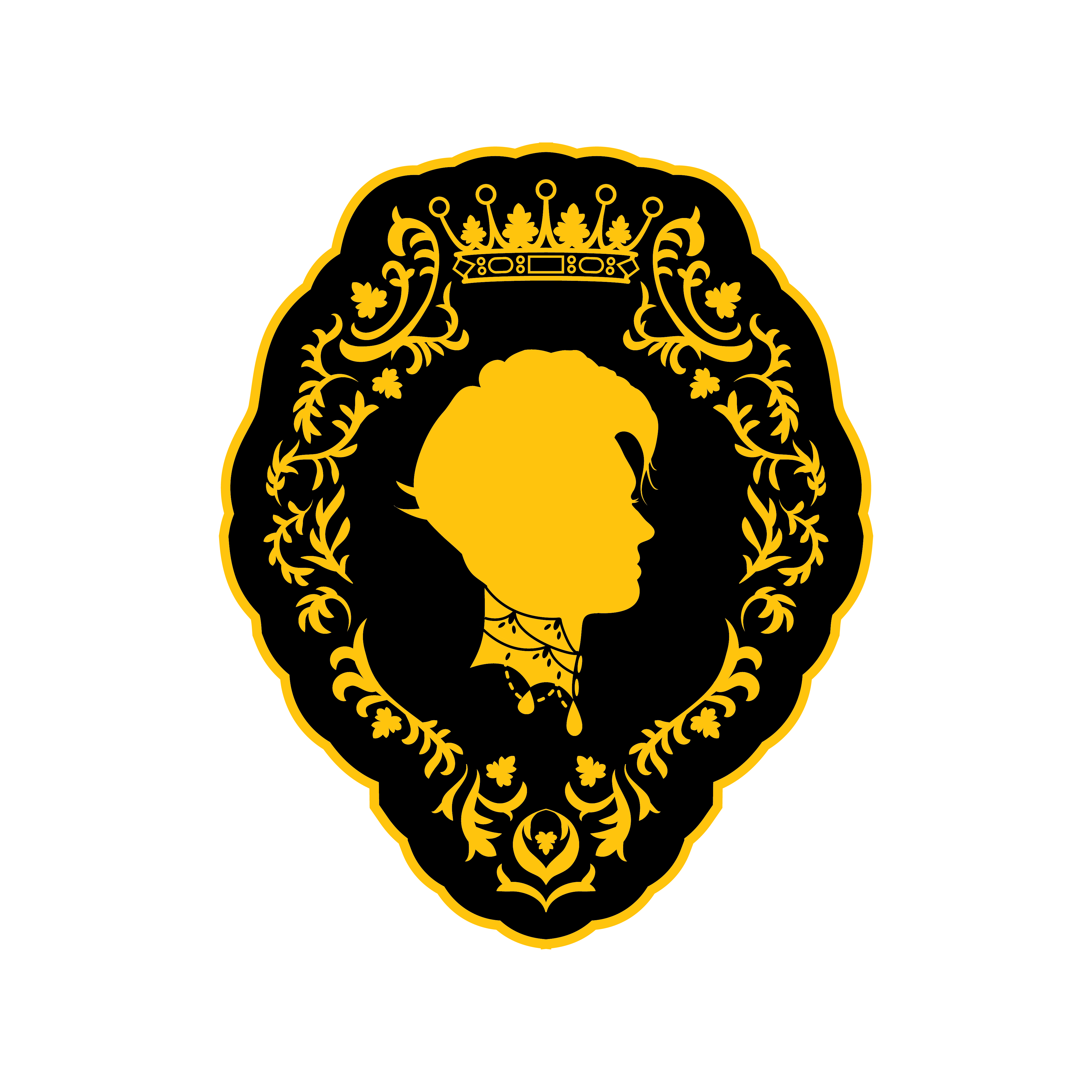Ashlyn requested the use of black and gold as the colors of the brand. I centered the design around her silhouette. Victorian cameos feature a silhouette framed by golden filigree. I utilized this high gothic style to capture the nobility of a countess. The frame around the silhouette is capped by the coronet of a countess, featuring different elements of various european coronets representing this title. The filigree has elements that reference the antlers of a deer. These antlers are prominently featured on a tattoo of Ashlyn’s. The Victorian jeweled collar adds to the sophistication of the design, giving a hint toward the gothic romance and elegance of vampyric beauty. I gave Ashlyn a very modern and edgy hairstyle, juxtaposing the more stately Victorian elements with a sense of creativity and artistry.